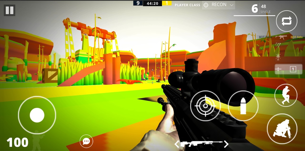 1、武器色彩鲜艳的皮肤可以自由选择,与其他玩家互动,完成合同和执行军事任务。