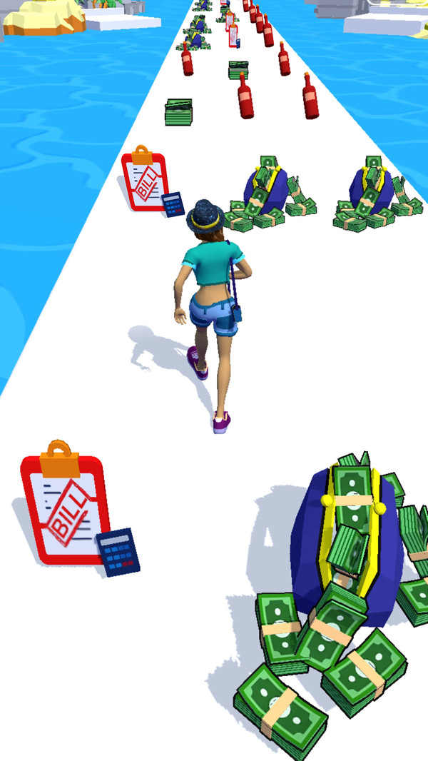 2、一路上全部都是金币和钞票,一定要全部收集起来,眼疾手快躲避障碍物。