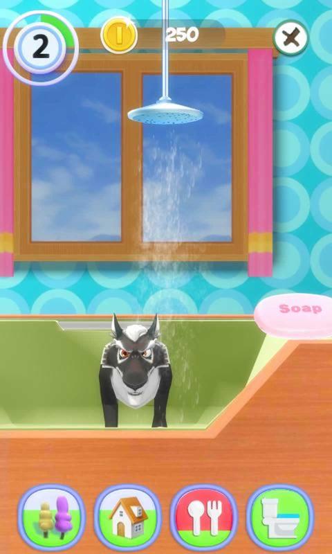 3、它可以在浴室里洗澡,在卧室休息,当小狼玩累了,要记得喂它吃东西。