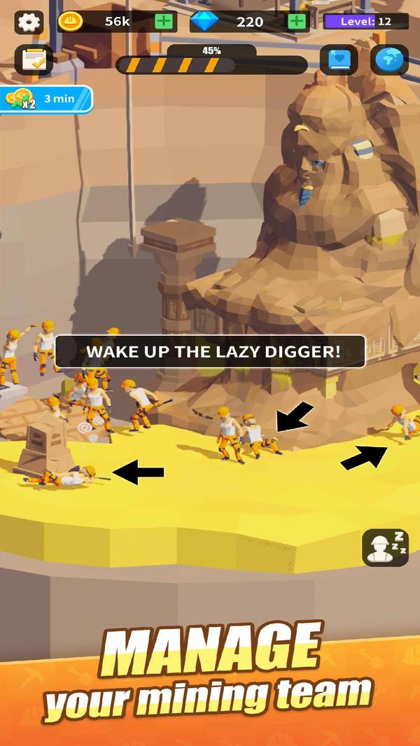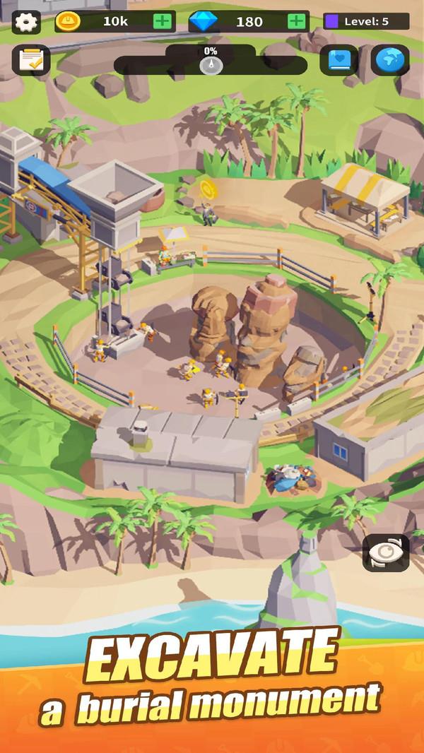 1、简单卡通的3D场景中,作为考古学家开始挖掘,体验优质的服务和技巧。