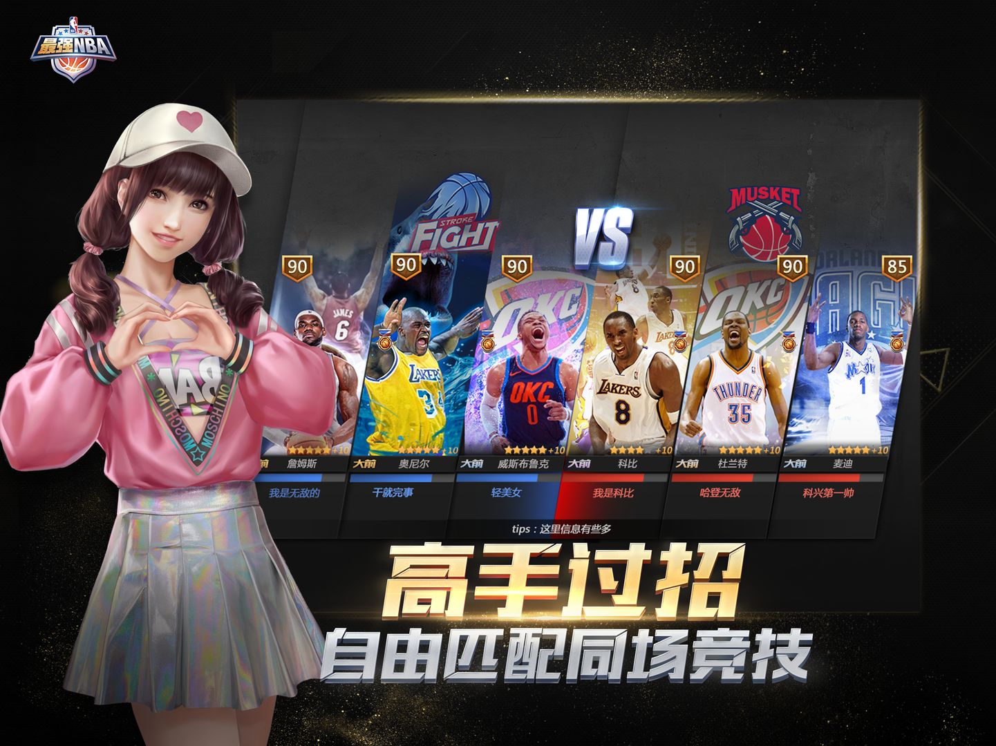 3v3对战模式:采用经典街头篮球半场对战模式,每位玩家仅选取并操作一位角色进行实时对战。团队阵容自由搭配,花样战术打法等待玩家自行研究。
