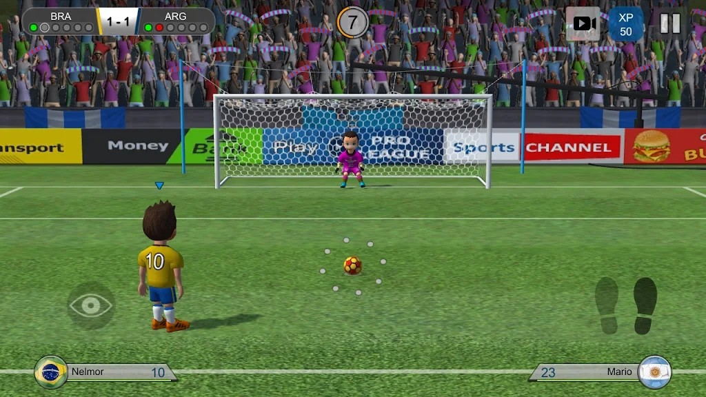 职业踢足球Pro Kick是一款精致的3D画风的体育竞技足球游戏。游戏中玩家将看到许多的3D可爱小人,这些人都有着自己的特殊技能,玩家招募自己需要的人物来组建自己的球队,有针对性地训练这些球员之后就能够去参加比赛,考验球员能力的时候到了。玩家可以指挥每一个人物,调整他们的位置和射击的角度和力度,正确的话就能顺利进球。