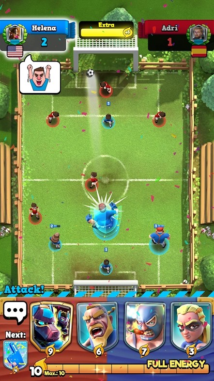 2、并收集和升级数十张牌打造你的足球阵容;