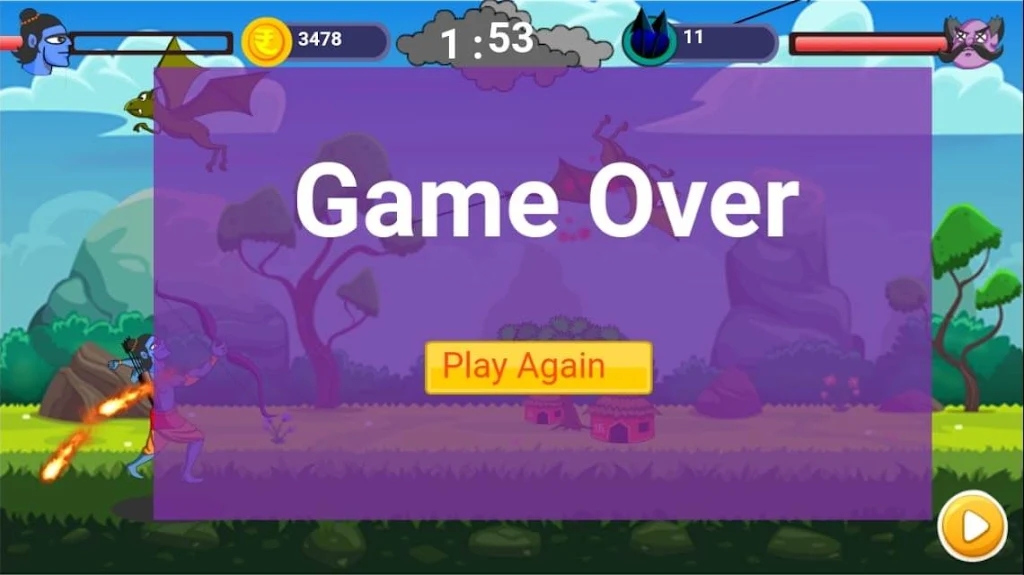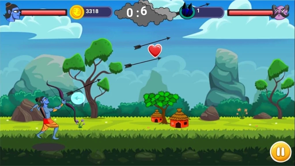 1、罗摩古代武士有卡通动画场面,精彩的冒险,在一定时间内把敌人给射死。