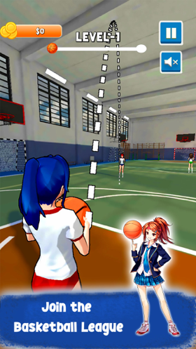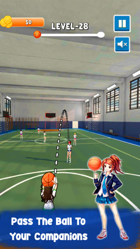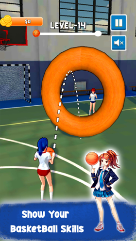 1、和可爱的美少女一起打篮球吧,在室内篮球场完成各种投篮挑战。