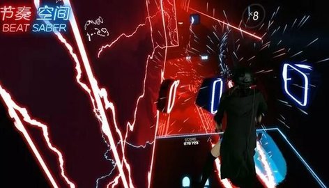2.演奏者挥动光剑来切割有节奏的方块,并随着音乐的节奏避开障碍物。