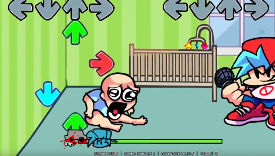 周五夜放克宝宝兄弟模组,一款全新的音乐节奏游戏。在这个模组中玩家将遇到新的说唱对手,他就是一位非常可爱的小宝宝,玩家将扮演BF和小宝宝来一场紧张刺激的音乐说唱比拼,玩家输掉的话游戏就需要重新开始哦。跟着音乐节奏来进行相应方向键的操作,在正确合适的时间按下按钮能够获得更多的分数奖励。喜欢的话不妨来下载试试哦。