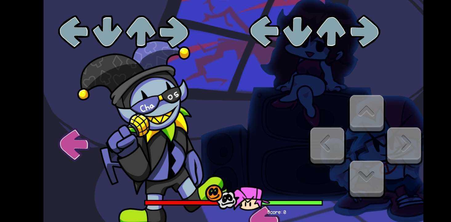 黑色星期五之夜三角符文模组是一款非常优秀的音乐节奏游戏黑色星期五之夜的模组,在这个模组中和像素冒险游戏三角符文进行了联动,玩家可以在游戏中挑战三角符文中的角色,一起来进行音乐节奏的对战。游戏中玩法延续了之前的作品,玩家跟着音乐节奏来操作相应的方向按钮,成功的话就获得分数奖励,一首歌曲的时间分数最高的一方获胜。