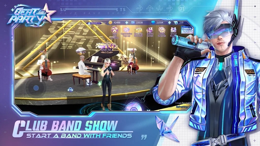 最佳派对是一款有着精彩炫酷画面的优质音乐节奏游戏。玩家在这个游戏中可以自由地组建自己的乐队,摇滚乐队或者是古典乐团都是可以的,玩家可以招募其他的玩家朋友一起来玩音乐。游戏中玩家将根据音乐节奏来进行相应的操作,只要在合适的时机内做出正确的操作就可以获得高分数三星完美完成关卡挑战了。不同的关卡难度不同,后面的关卡非常考验玩家的手速,可以来下载挑战一下自己哦。