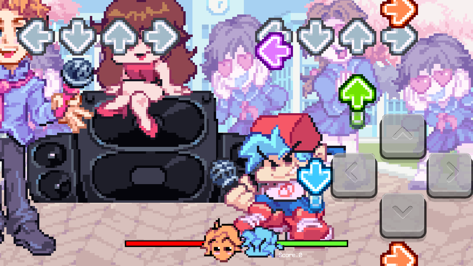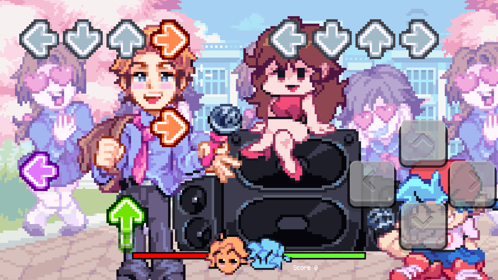 fnf形状与节奏模组是网红音乐节奏游戏周五夜放克的其中一个优质的游戏模组,玩家玩这个模组能够获得全新的体验。玩家在游戏中扮演BF,这次将进入到一所青春洋溢的高校中去,和那里的人气校草进行一场音乐说唱的较量。校草带来的音乐是甜美风格的,玩家跟着音乐节奏来操作相应的方向键,正确的操作能够为自己加分,分数超过校草就能够战胜他哦。