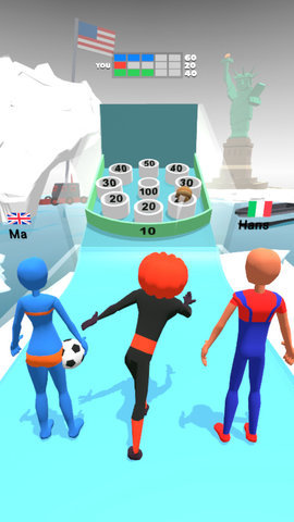 1.把球滚下球道,用一个简单的滑动控制瞄准篮筐。