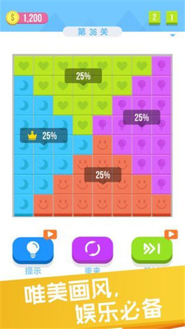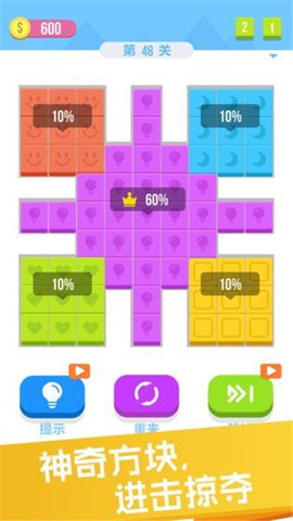 1.各种不同类型的方块图形,可以让玩家思考如何拼凑起来。