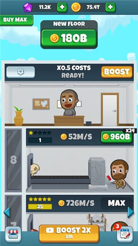 1.布局升级模式解锁各类建筑,拥有多种商业模式,公司需要无数人才共同完成建设。