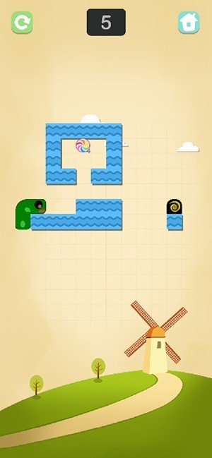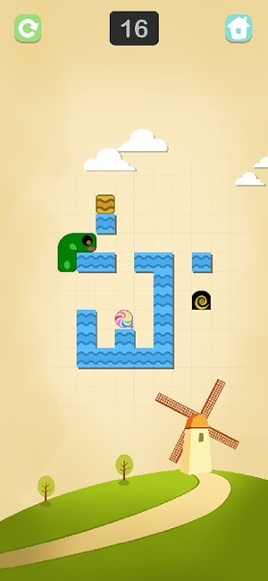 3.在游戏中,你扮演一个可爱的小虫,滑动屏幕将小虫移动到糖果处,然后离开空间进入下一个关卡。
