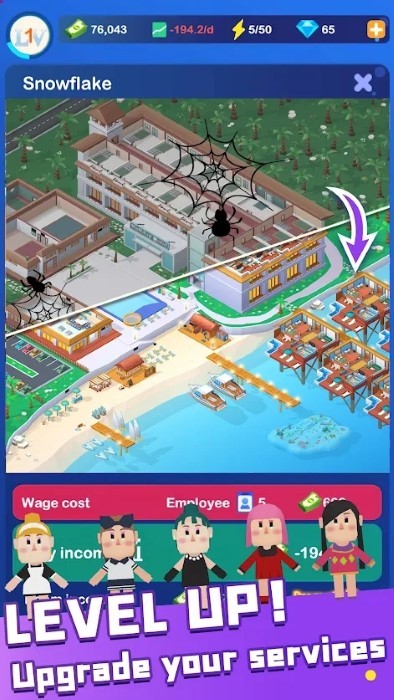 梦幻度假村是一款非常好好玩的休闲模拟游戏,它为您提供更有创意的游戏体验,创造更好的游戏体验,成为著名的度假胜地。它还可以帮助你提供许多方式来发挥,招募员工,扩展你的地盘。
