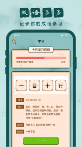 2.可以完整的记录你所学到的所有成语,用户可以随时查看。