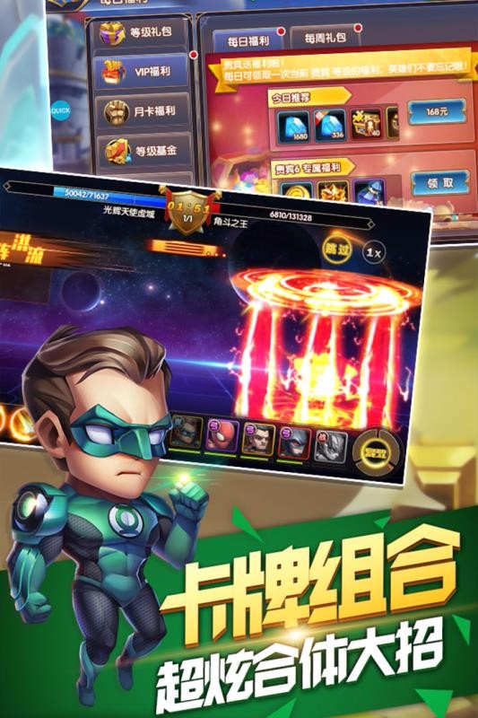 你可以在游戏当中开始一场很精彩的回合制对战,这款游戏里的超级英雄是大家非常熟悉的角色,有着很多酷炫的技能可以施展。