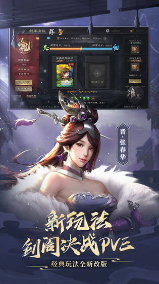 5. 创新玩法:全新PVE活动场-剑阁决战酣战淋漓、全新PVP玩法-智斗三国乐趣无穷。