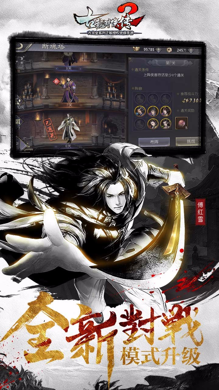 古龙笔下上百位个性侠客,无职业设定,所有侠客自由搭配不同战斗流派,最强战斗阵容由你做主。