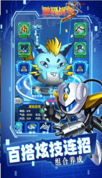 究极数码战争是一款全新上线的二次元策略类即时战斗手游。全新升级的系统,更新的UI角色设计,Q萌的角色形象,打造出最温馨的空间。卡通的人物角色更放松视觉疲劳,控制数码兽参与各种战斗,还可以任意组合他们,让自己的整容变得更加强大,感兴趣的玩家千万不要错过哦!