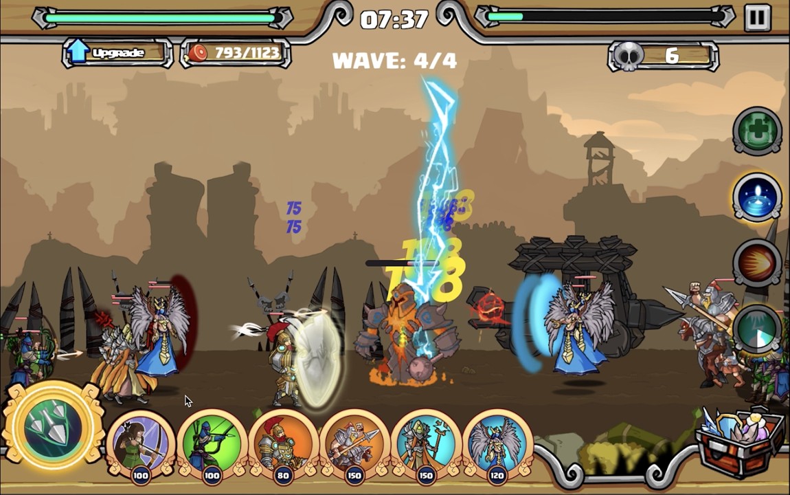 2、使用你的技能,从来袭的敌方单位保卫你的城堡