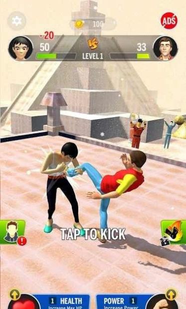 1、吃我一脚里采用了比较精致的3D游戏建模,角色对战动作都很流畅;