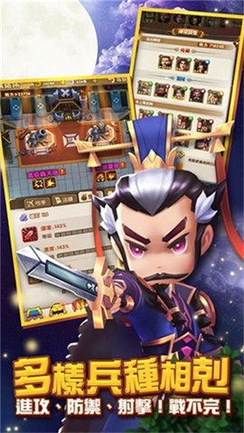 全民小小兵是一款以三国为题材背景的Q版画风的塔防策略手游。各种武器属性的克制设置。各色各异的三国武将都将以q版的漫画风格登场。享受免费PVP就请收集武将吧。策略攻击敌人,才能称霸地图。