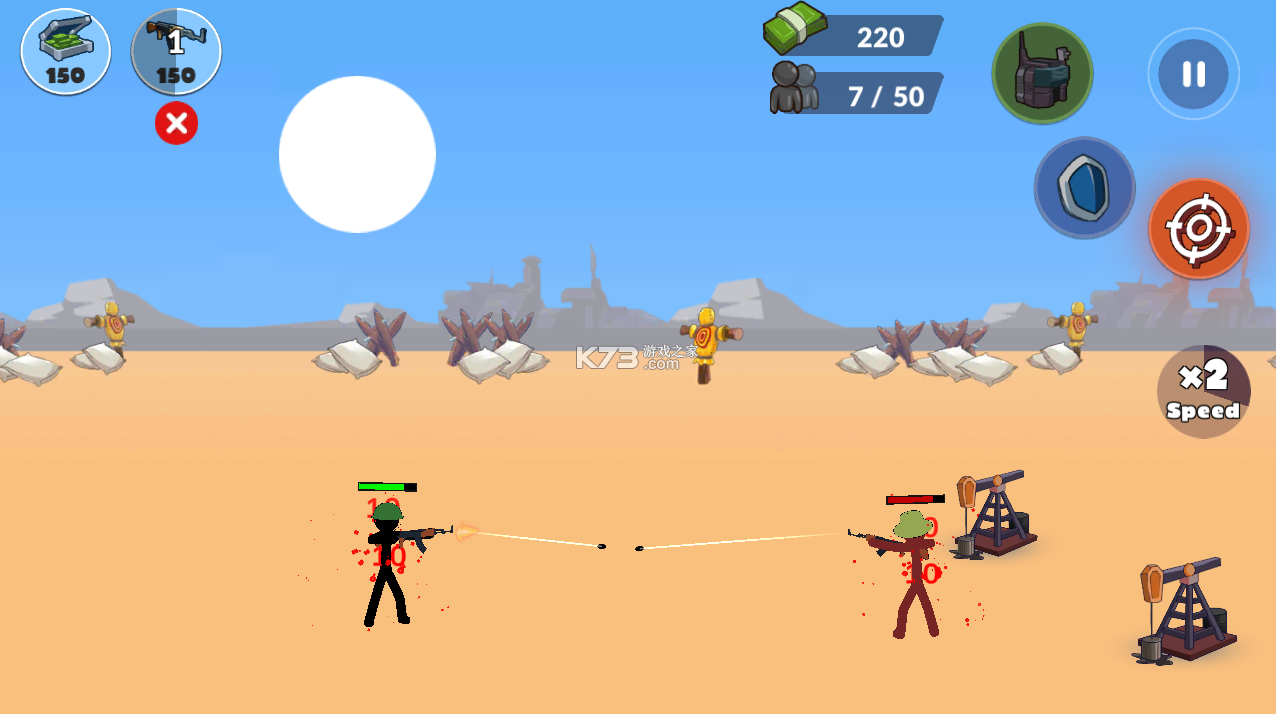 全新设计的的游戏界面炫酷十足,所有战斗英雄都以火柴人的形象出现更是为游戏添砖加瓦。游戏中玩家需要赚更多的钱,因为更多的火柴人角色需要大量的金币解锁,还有各种酷炫的武器也等着你收集,快来挑战你的游戏极限。