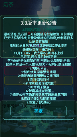 奶茶辅助器3.3是香肠派对奶茶游戏的游戏助手软件。它占用内存小,结构紧凑,功能强大,功能稳定。支持角色上色、新画面变黑、抓握防震、水上行走等功能,让玩家玩起来更加顺畅。