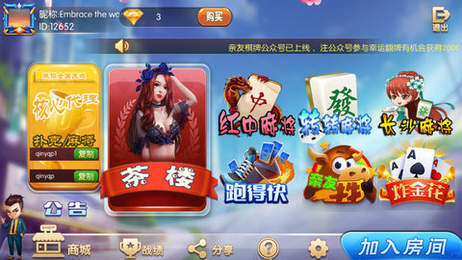 它是四川和重庆具有地方特色的棋牌游戏中心。 有象棋牌游戏,具有很强的四川和重庆当地文化特色,例如斗地主,成都麻将血战,六人麻将血战麻将,马具和流血河。