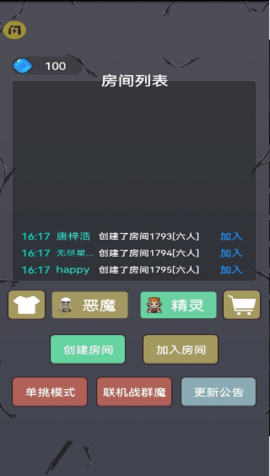 3.游戏开始前,玩家可以创建自己的房间,当朋友们进入房间后,可以开始游戏并一起组成一个团队