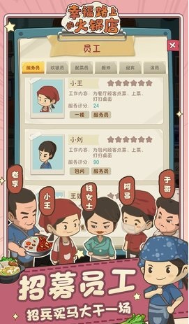 幸福路上的火锅店是一款非常有趣的经营游戏,玩家经营一家火锅店,开发不同的菜肴解锁新的人物,画风也是非常的可爱,体验不同的经营乐趣,赶紧下载试试吧!