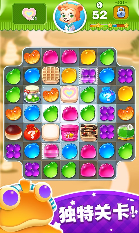 1.完成冒险关卡解锁惊喜,完美的糖果形象让你流口水
