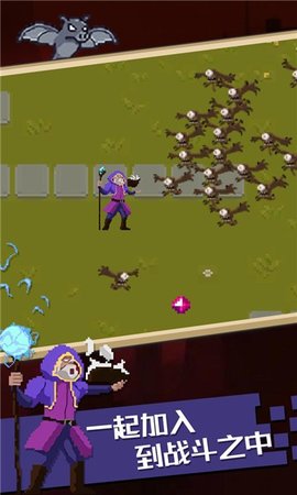 你只能控制攻击方向和需要升级的内容。怪物将继续出现在屏幕之外。你需要做的就是打败他们。随着时间的推移,怪物的力量会越来越强大,数量也会越来越多。然而,击败怪物可以获得经验和道具奖励,从而提高战斗力。