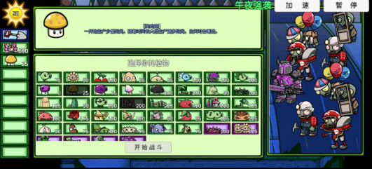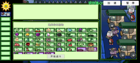 1.比赛前,玩家可以自由选择挑战等级,升级各种植物进行战斗。