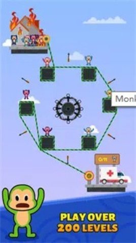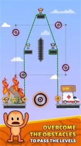 3.通过不同的连接方式获胜,避免各种机制以保证猴子的安全,并不断连接绳索到终点线,完成你的挑战。