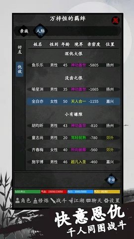 武术主题文字游戏行侠传向玩家展示了一个文字情节。情节丰富,玩法简单悠闲,可以培养各种技能,可以自由锻造大量的装备和神器,可以拍卖交易更多的珍宝,进行善恶搏斗,共同走进江湖,打造一个完整的武术江湖世界!