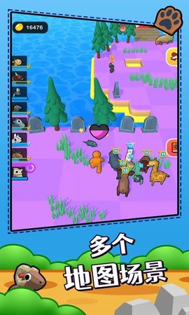 休闲模拟冒险游戏;在游戏中,玩家需要组成一个动物团队来完成冒险。在冒险过程中,他们会遇到其他动物的攻击,并用自己的团队打败它们;玩家还可以收集喜爱的动物;不同的动物对不同的对手有不同的抑制作用。玩家可以收集和培养更多来击败各种对手。