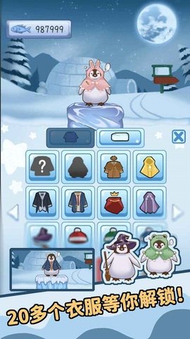 3.帮你的企鹅换更多的衣服,享受每一件不同的服装的可爱。