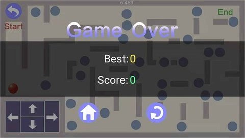 4.当球从迷宫中逃脱时,点击右下角的上、下、左、右来控制球的方向。
