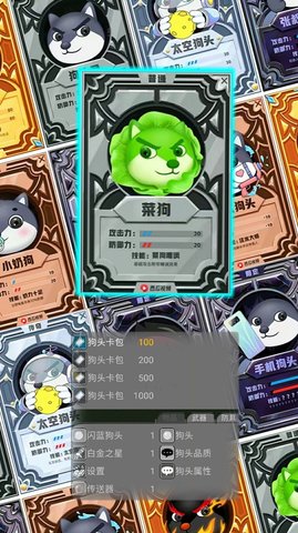 1.在动物世界中,玩家控制狗探索、赚取金币、抽牌、收集牌、提高属性和竞争!