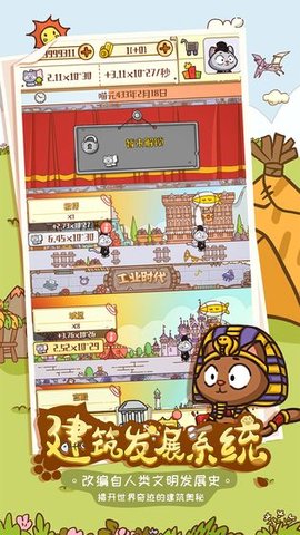 九个历史时期提出了一个接一个,但最终结果取决于您的操作,在游戏中从刀耕火种的航天器,扩大你的想象力,来教育部把休闲游戏猫人短暂的历史探索和经验,收集更多的历史名人,帮你见证历史的发展