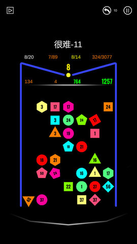 2.从所有小球上击打砖块,直到它们回到射击位置,称为一轮