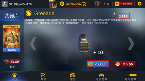 1.拥有子弹、狙击步枪、突击步枪、手枪、手榴弹和其他现代武器。