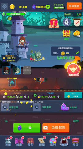 4.城堡升级,城堡达到一定等级可以打英雄,城堡等级高了,可以解锁被动技能,增加城堡的生命时间。