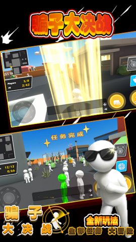 骗子大决战是一款拥有大量关卡的游戏,游戏中玩家需要隐藏自己的身份,并且能够快速完成关卡中的一系列挑战,整个游戏还拥有非常不错的画面和可以使用的道具,让玩家在游戏中体验到非常有趣的内容,并且获得很多乐趣哦