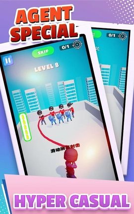 2、随意滑动屏幕,画出子弹的飞行路线,躲避人质,消灭邪恶