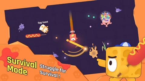 在游戏中玩家控制自己的零食角色进行战斗, 想办法打败对手的零食,吃光所有的食物