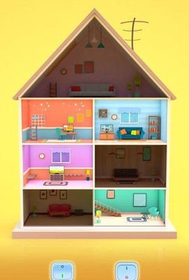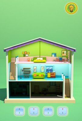 1. 游戏开始后,点击界面底部的开关,房间的灯就亮了,但是我不知道是哪个房间