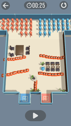 在人口拥挤游戏中,玩家需要疏散拥挤的人群。游戏的玩法非常简单和丰富。不断设置障碍物,使其有序排列。关卡的场景是不同的,所以你应该根据不同的场景改变游戏。有许多不同的任务等着你去体验和尝试。